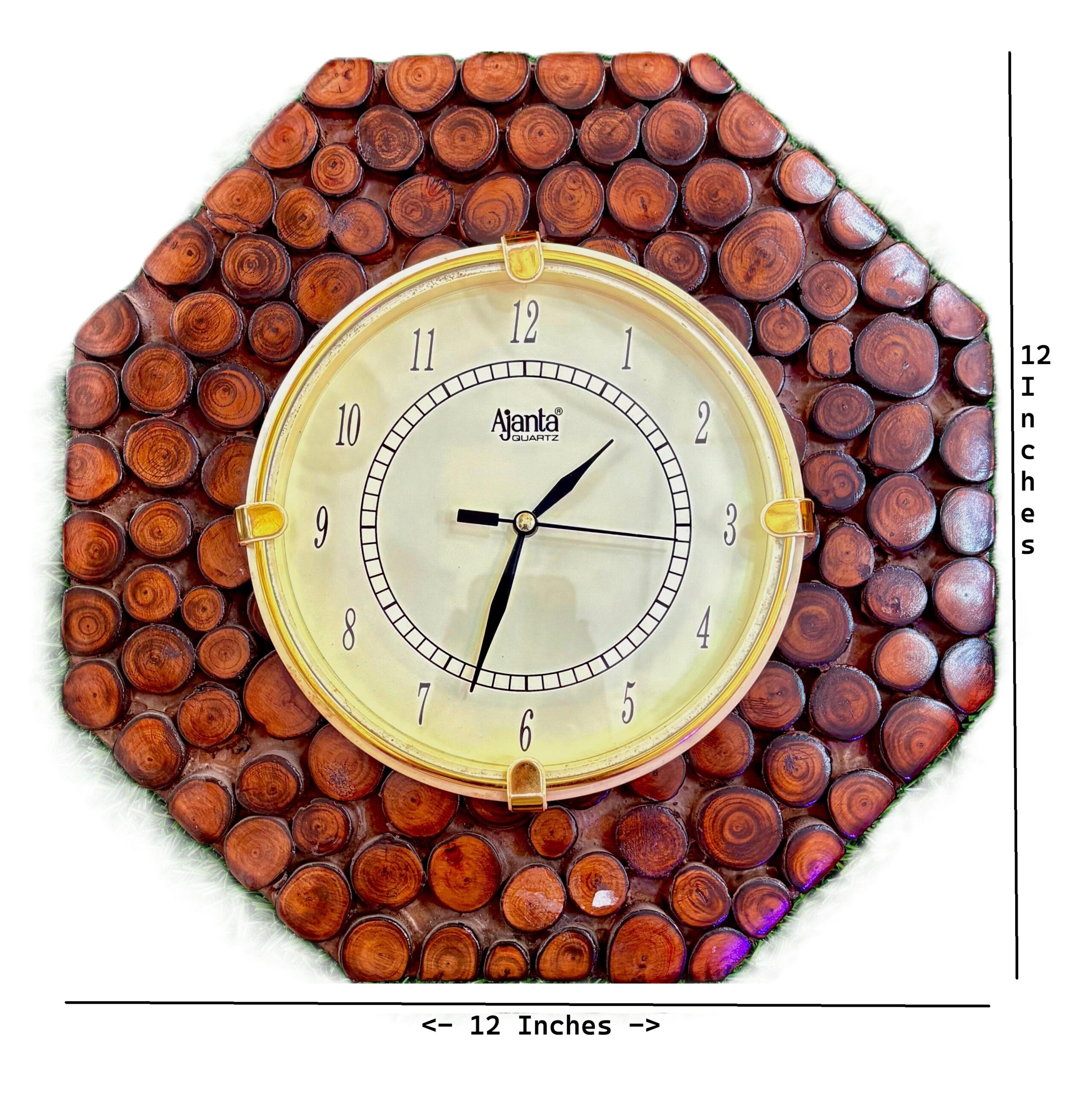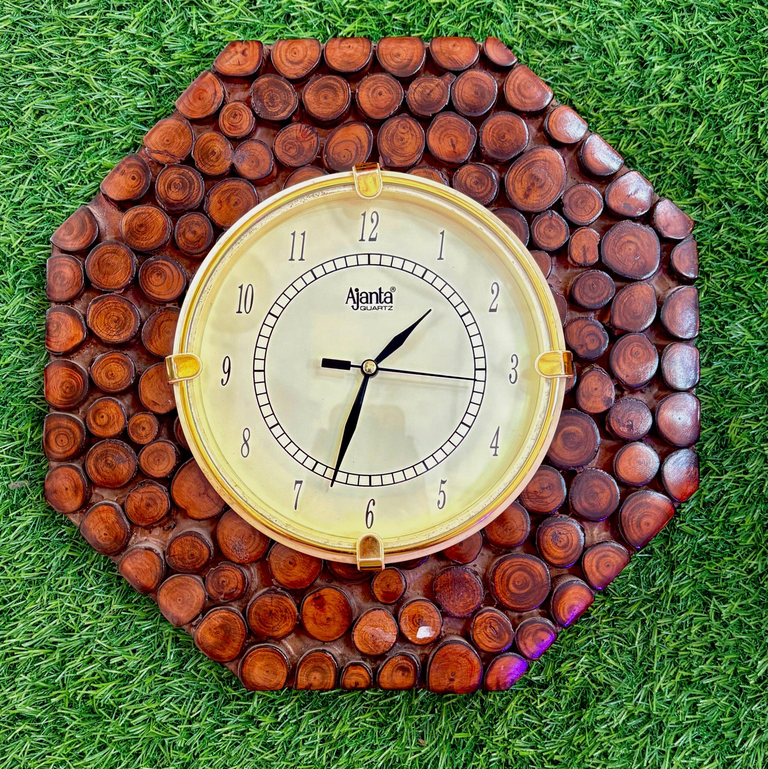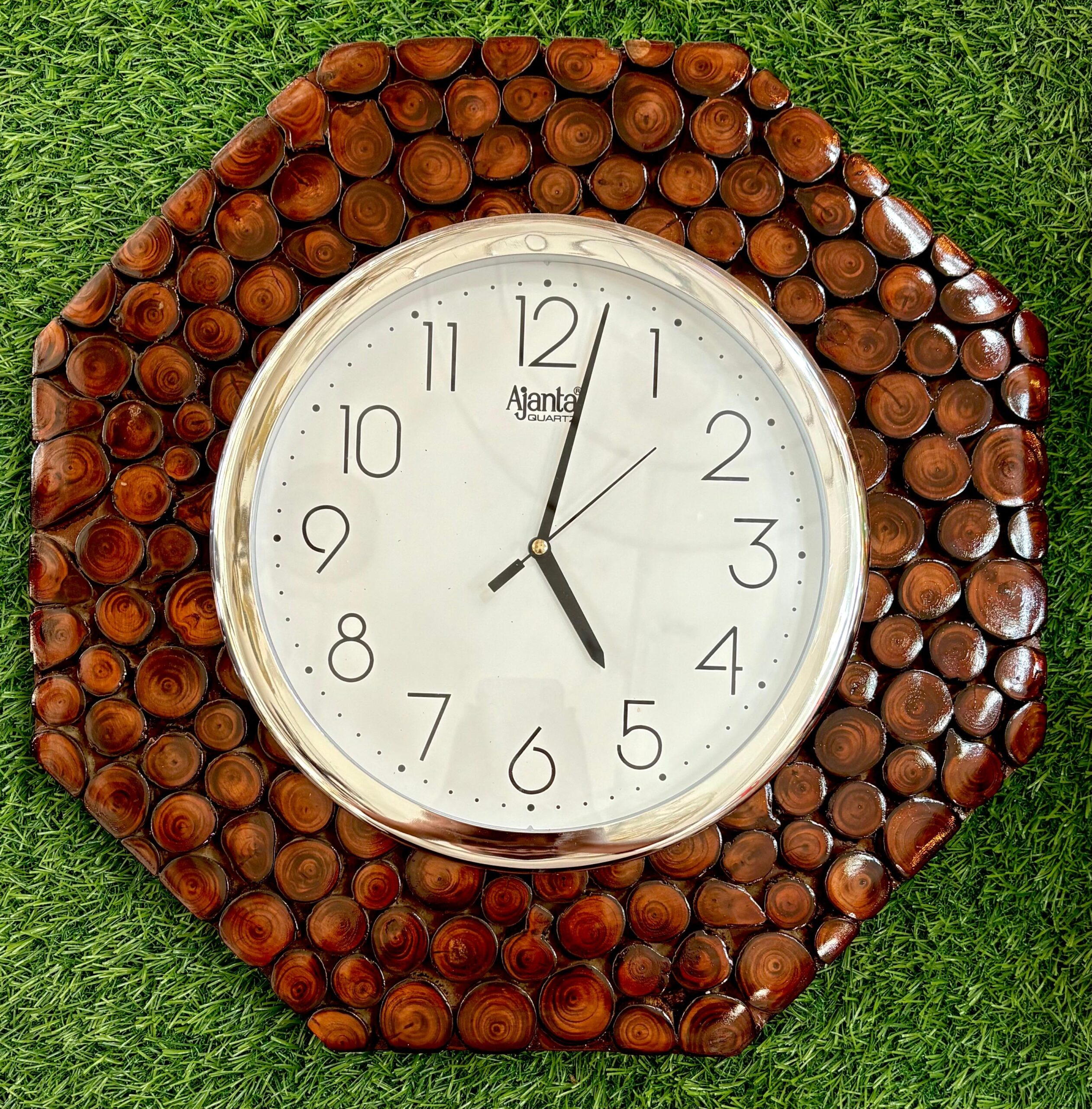 Enhance the elegance of your living space with this beautifully handcrafted Ajanta wooden wall clock. Designed with a unique logwood pattern and traditional round dial, this clock is both a functional timepiece and a stylish wall décor item.