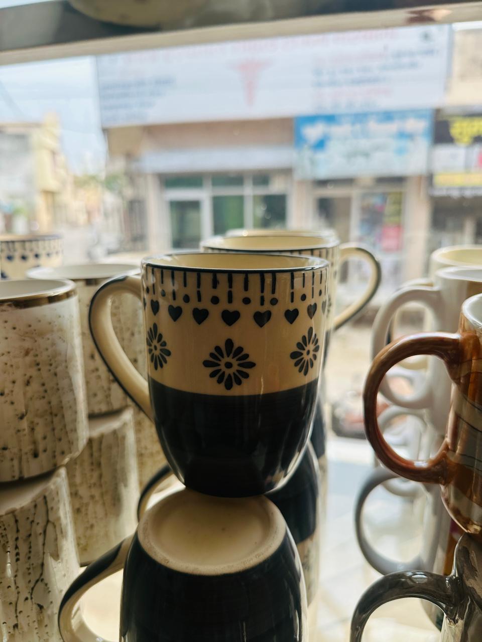 Elevate your beverage experience with this beautifully crafted Ceramic Printed Milk Mug, designed to combine elegance with daily utility. Featuring a charming floral and heart pattern in a black and cream color combination, this mug adds a touch of sophistication to your kitchen or office.