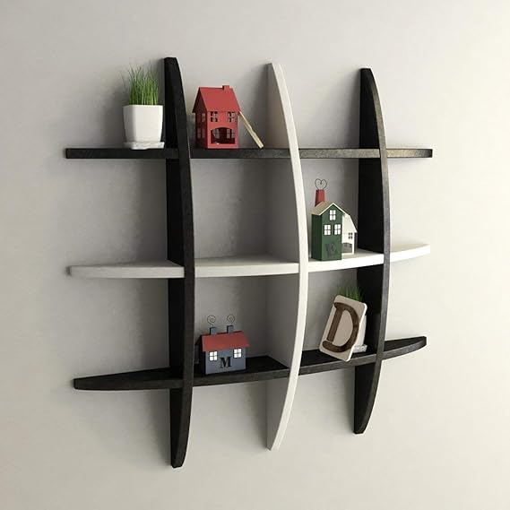 Whether installed in your living room, bedroom, hallway, or office, this elegant shelf brings an artistic flair along with useful storage space. Crafted with high-quality engineered wood and a contrasting black-and-white color combination, it effortlessly complements both modern and classic interiors.
