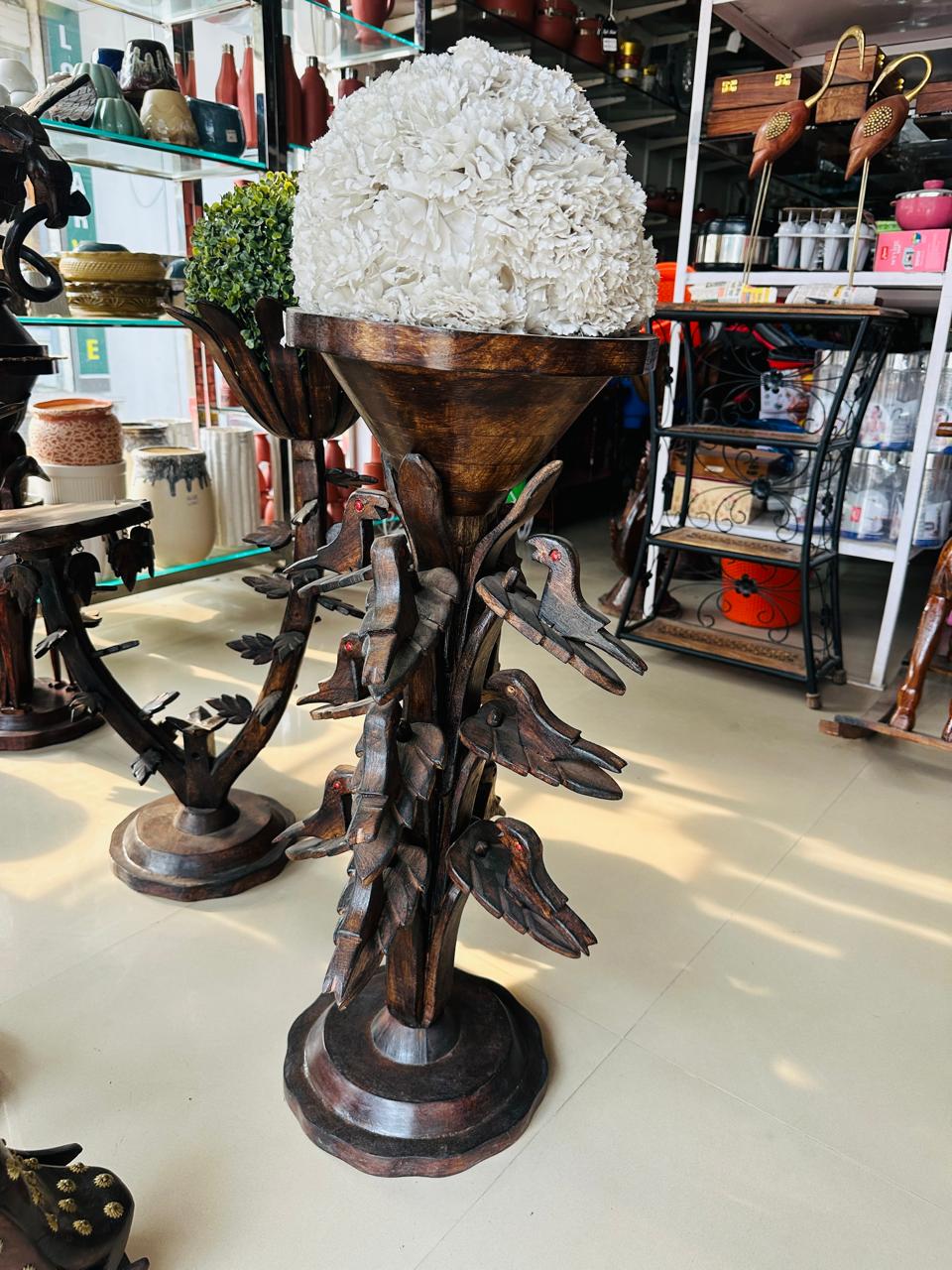 Elevate your home décor with this exquisite Handcrafted Wooden Decorative Flower Stand, designed to add a touch of rustic charm and elegance to any space. Made from premium-quality wood, this floor-standing planter features beautifully hand-carved bird and leaf motifs, showcasing the brilliance of traditional craftsmanship.