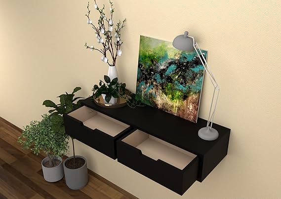 Upgrade your wall décor with this elegant wooden wall-mounted shelf with dual drawers. Crafted with a sleek and minimal design, this piece is perfect for organizing everyday items while adding a modern touch to your living space. With its deep drawers and sturdy surface, it’s ideal for displaying plants, books, lamps, photo frames, or even artwork.