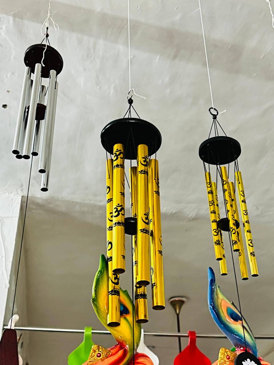 Bring peace, positivity, and a soothing ambiance to your home with these Premium OM Symbol Wind Chimes. Crafted with durable metal tubes in stunning golden and silver finishes, these chimes are designed to produce soft, melodic sounds that elevate the energy of any space.